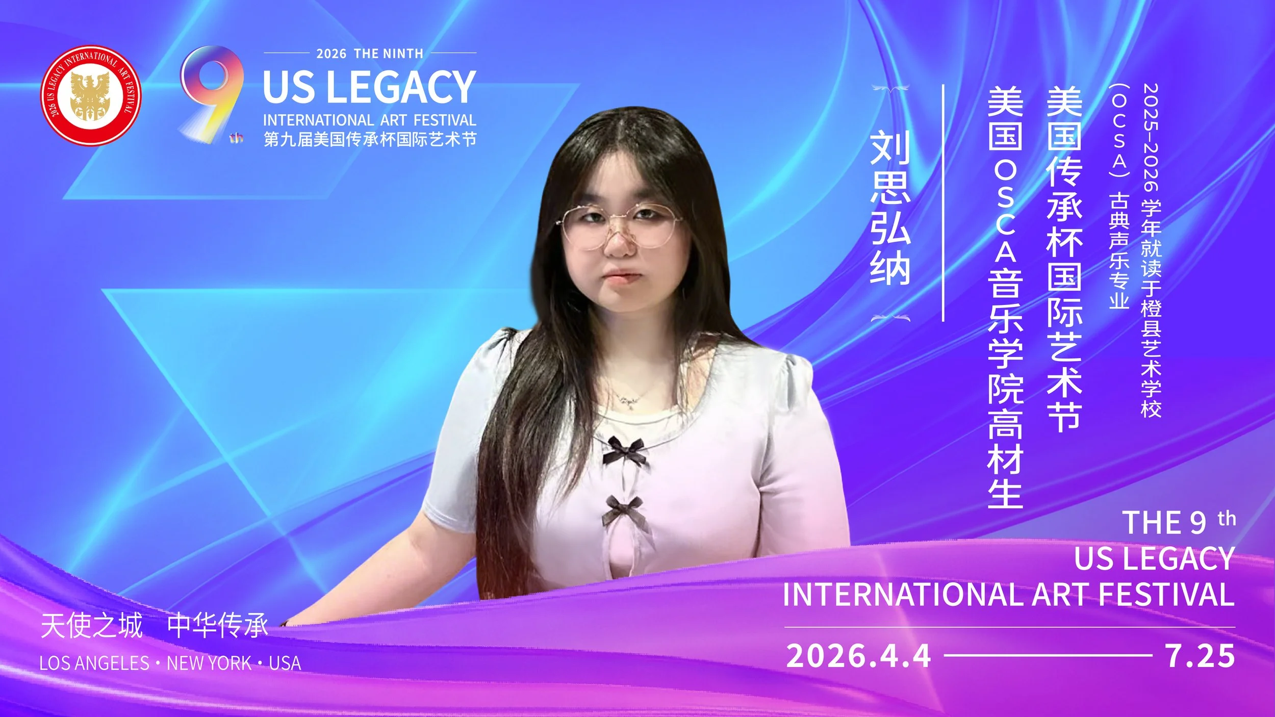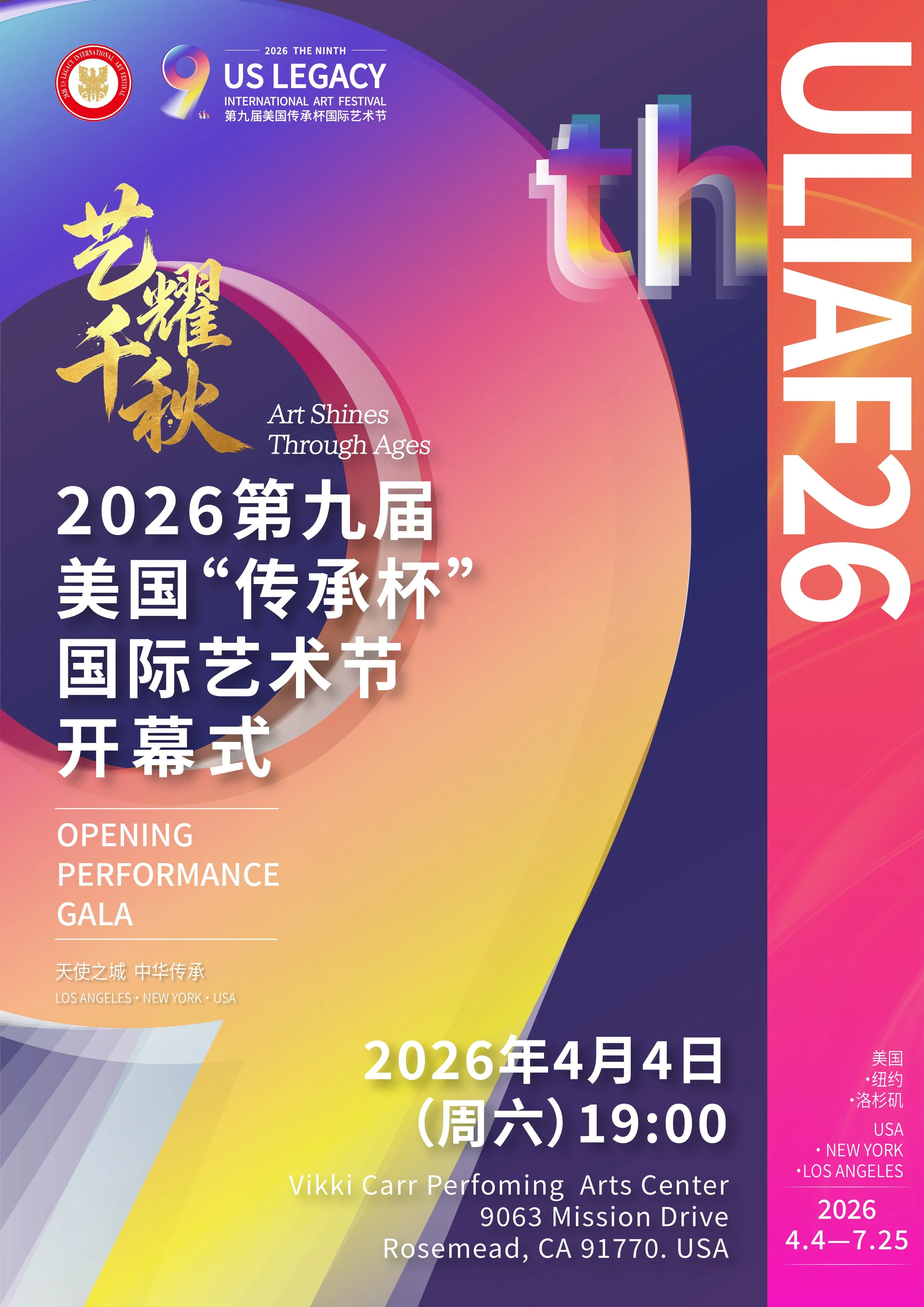 2. 《艺耀千秋》2026第九届美国传承杯国际艺术节开幕式:2026年4月4日晚上7点 | 洛杉矶 Vikki Carr 表演艺术中心