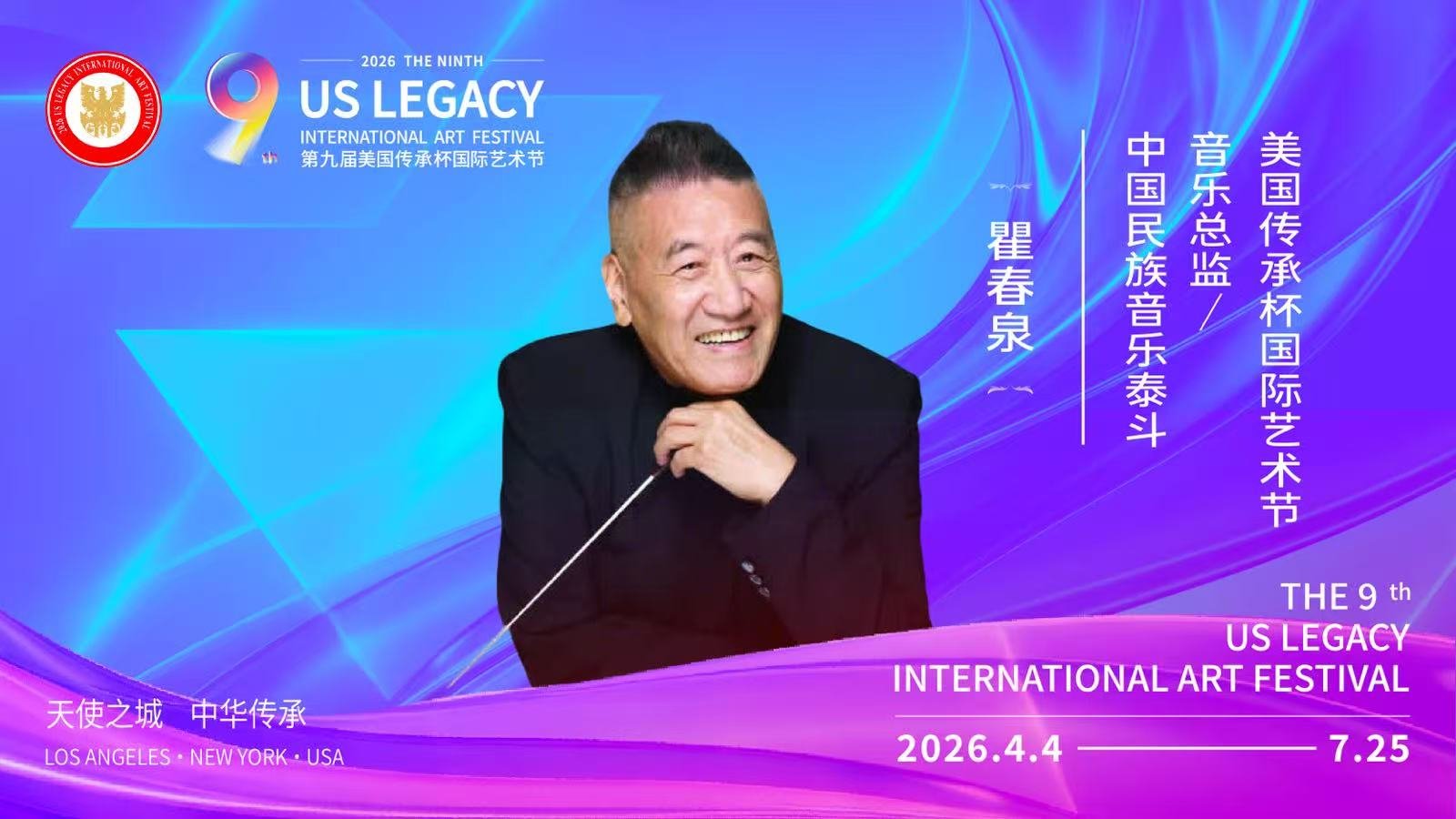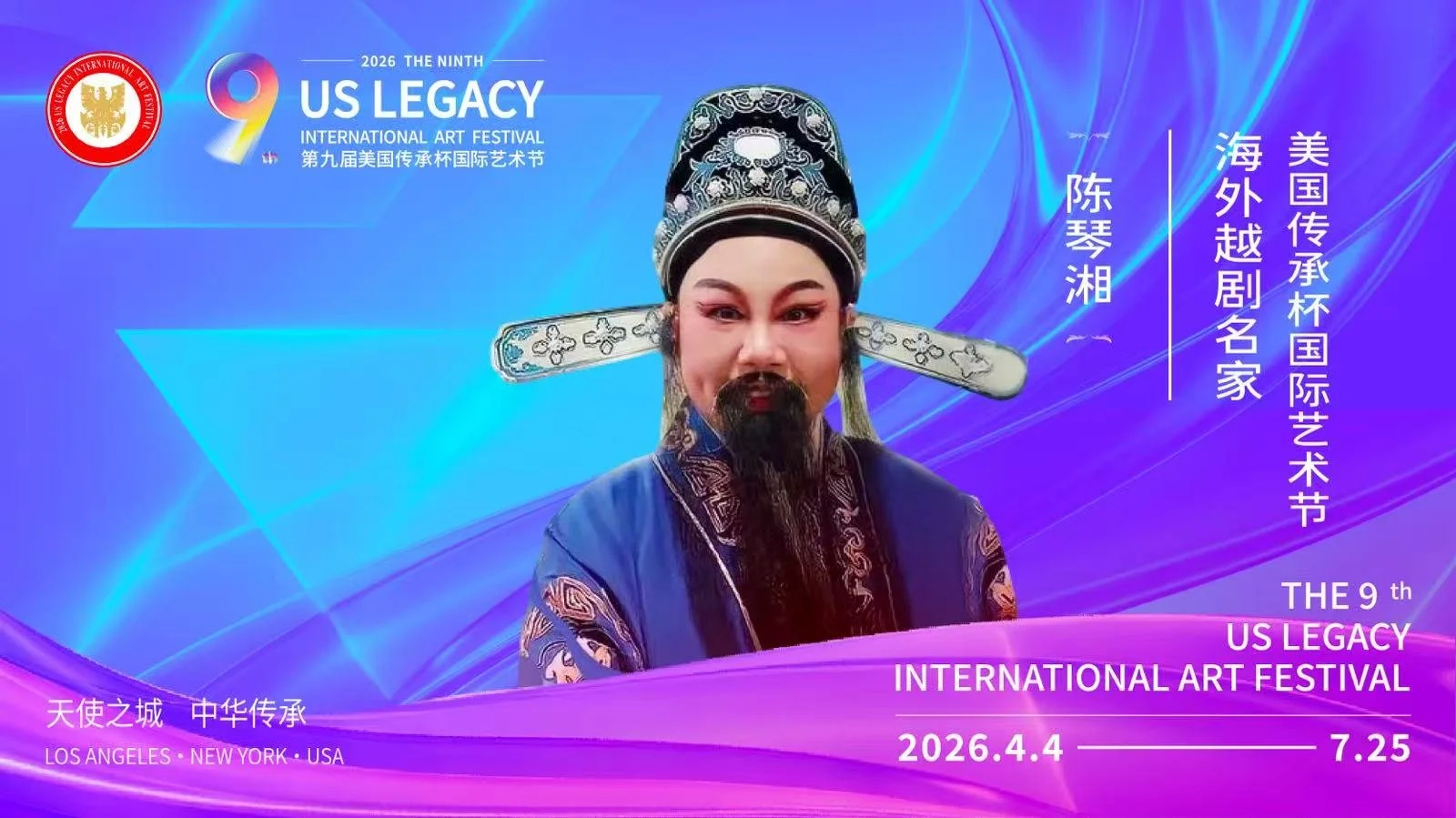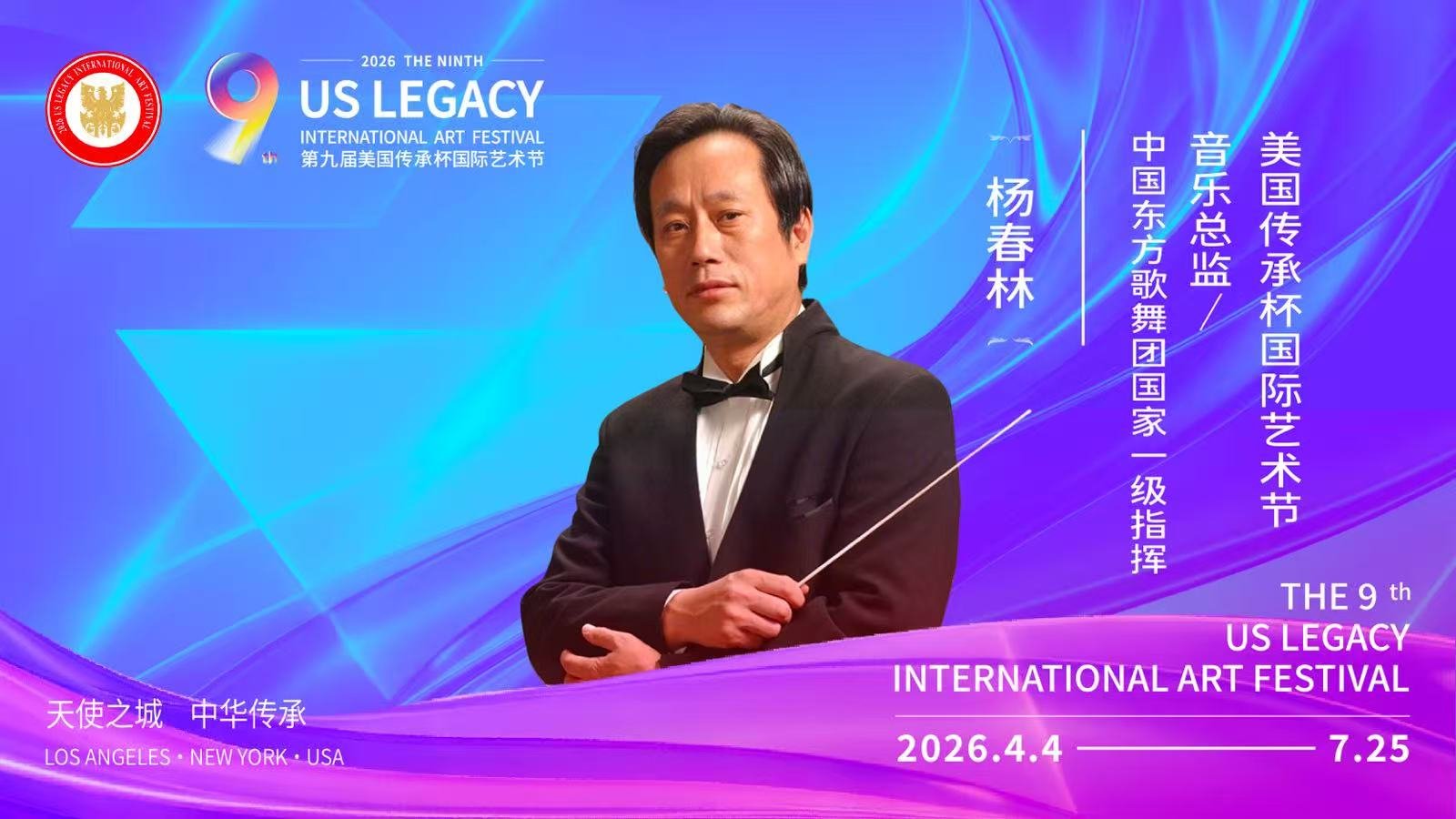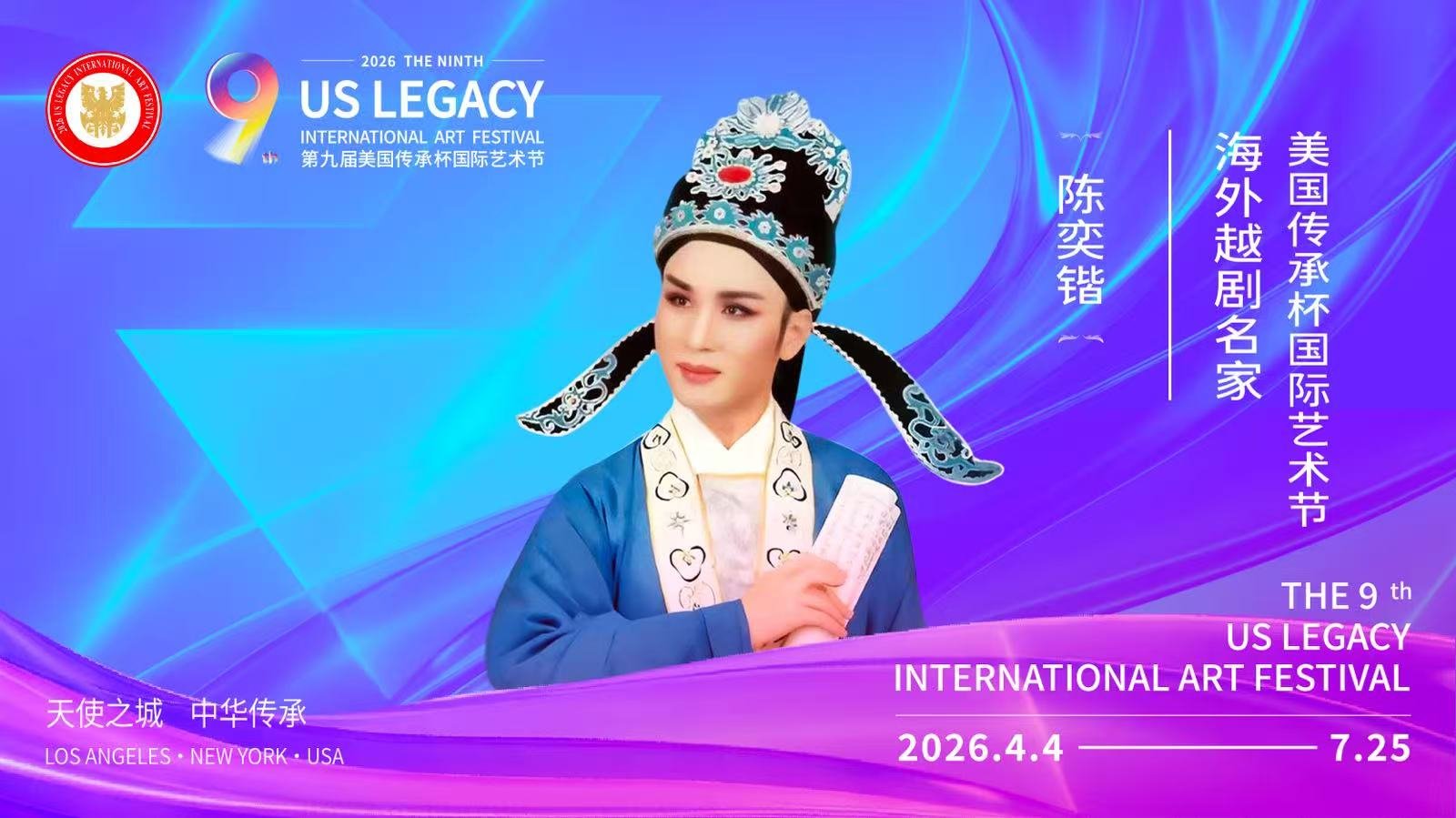 【洛杉矶讯】由美国梅拉诺文化演艺、美中非遗文化传承交流协会、美中华人音乐家协会联合主办,美国传承杯国际艺术节组委会承办的2026第九届美国传承杯国际艺术节,将于2026年4月4日至7月25日在美国洛杉矶盛大启幕。