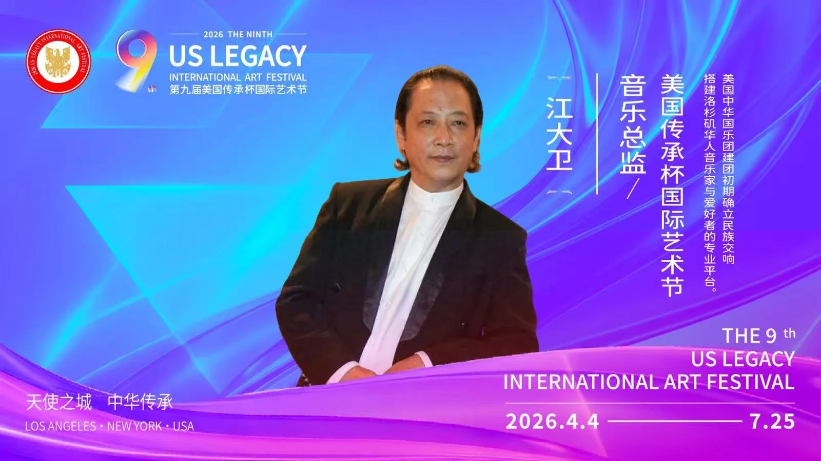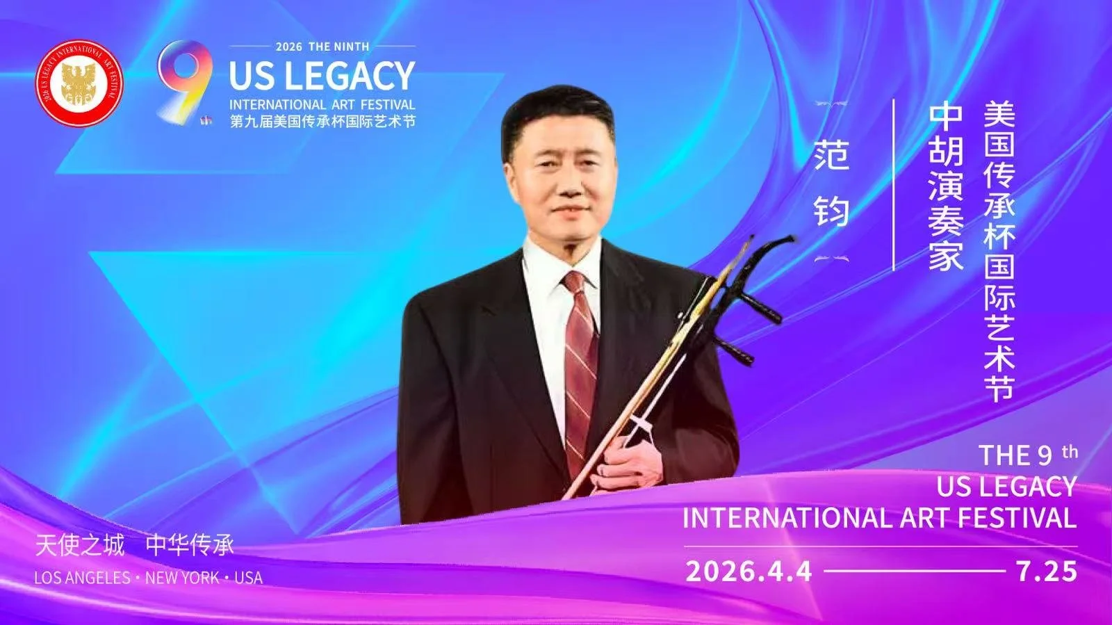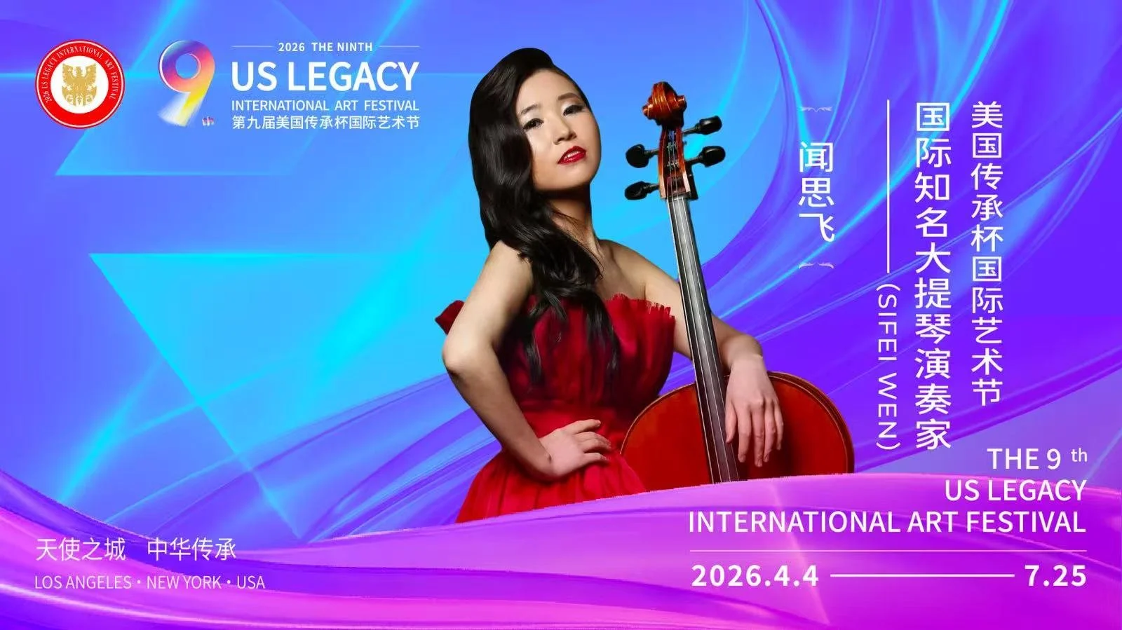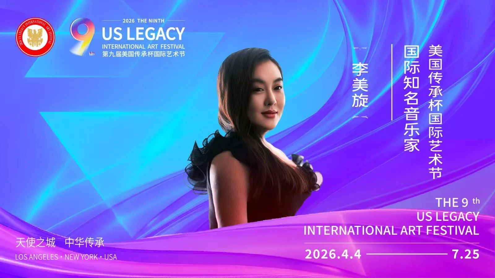【洛杉矶讯】由美国梅拉诺文化演艺、美中非遗文化传承交流协会、美中华人音乐家协会联合主办,美国传承杯国际艺术节组委会承办的2026第九届美国传承杯国际艺术节,将于2026年4月4日至7月25日在美国洛杉矶盛大启幕。