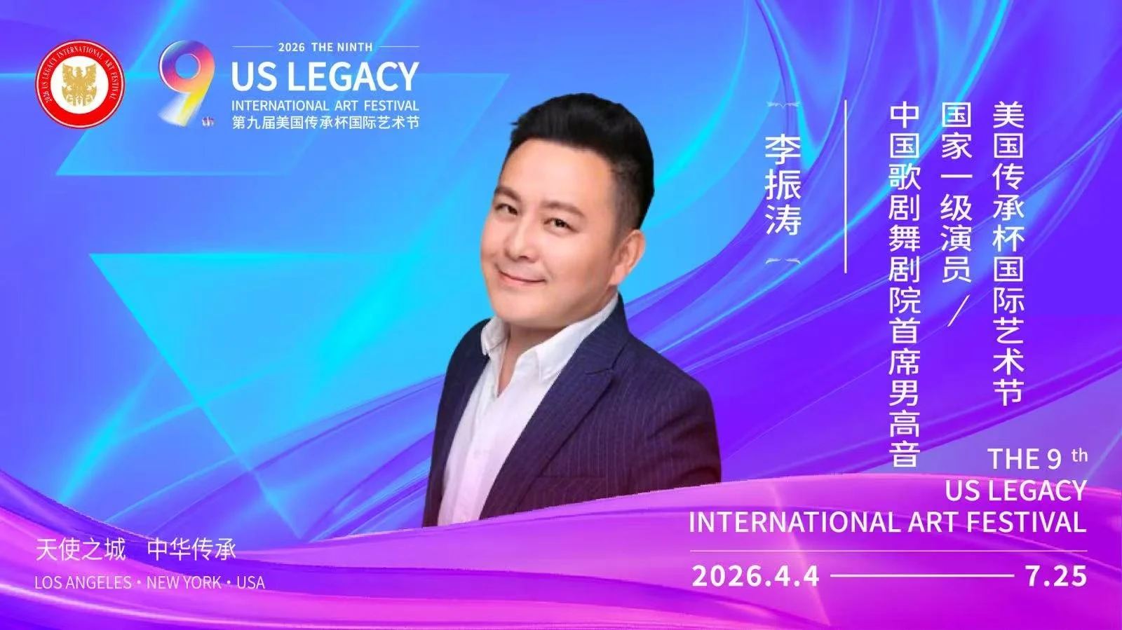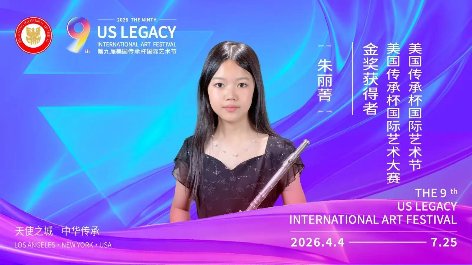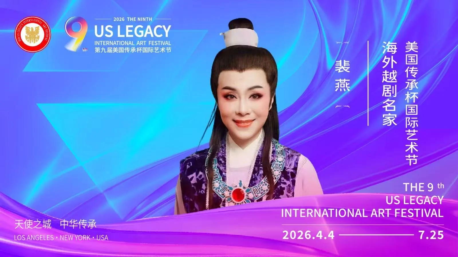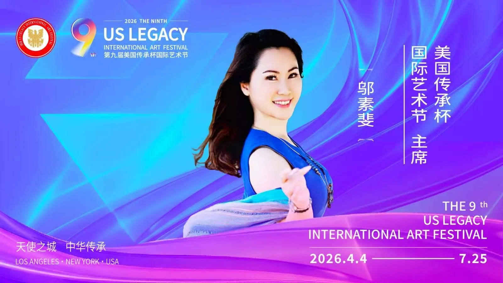 【洛杉矶讯】由美国梅拉诺文化演艺、美中非遗文化传承交流协会、美中华人音乐家协会联合主办,美国传承杯国际艺术节组委会承办的2026第九届美国传承杯国际艺术节,将于2026年4月4日至7月25日在美国洛杉矶盛大启幕。